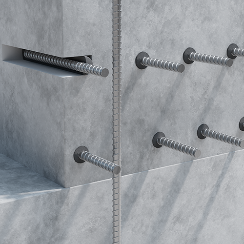 - Barre filettate (acciaio galvanizzato o zincato a caldo, acciaio inox A4), ferri e barre rinforzate, manicotti filettati internamente.